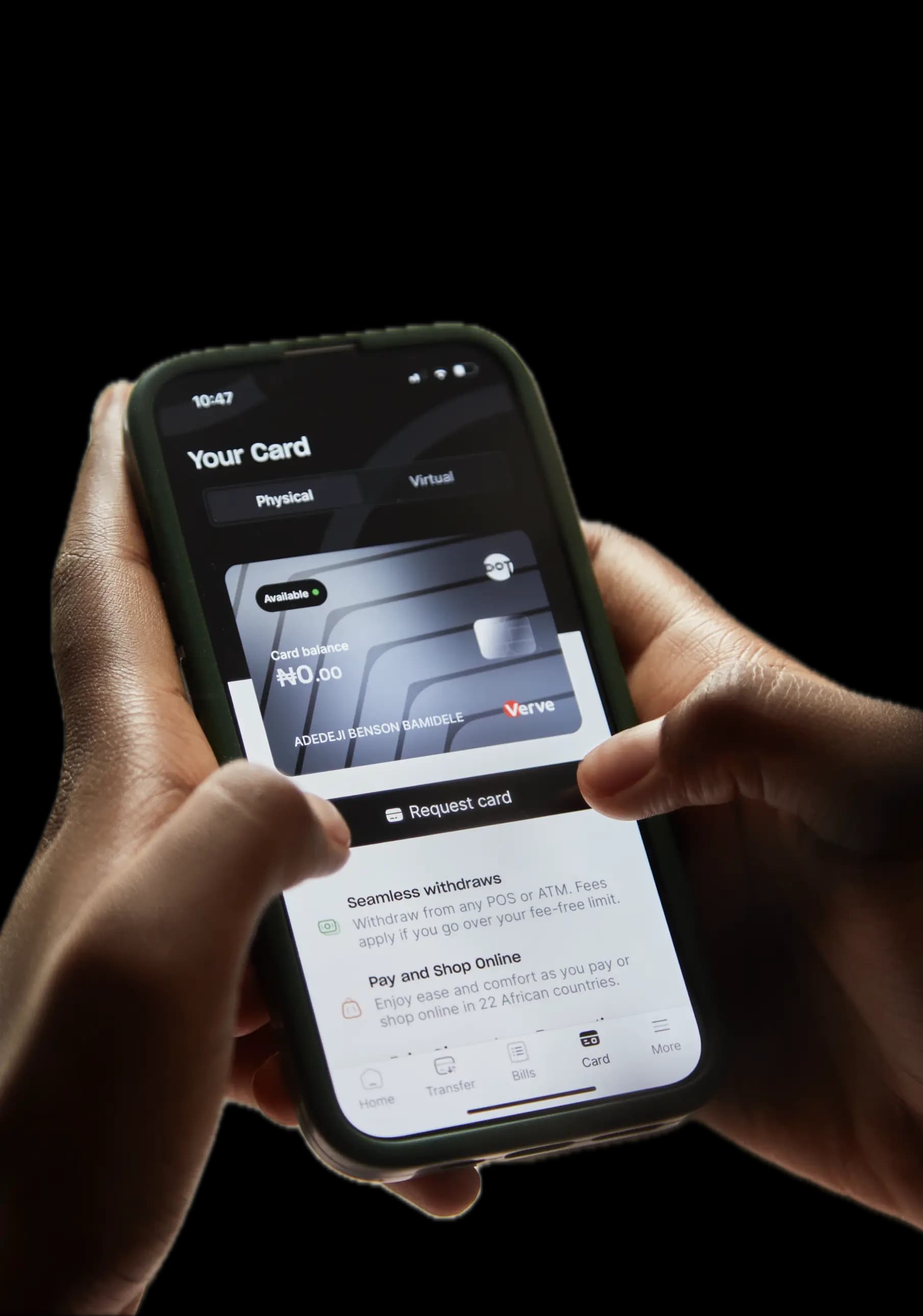 You can order your Dot card from the app and we’ll bring it to your doorstep wherever you are in Nigeria.